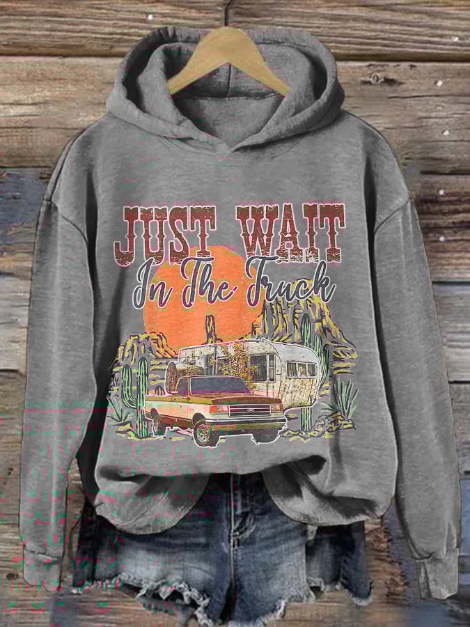Retro Domestic Violence Awareness Just Wait In The Truck Print Hoodie