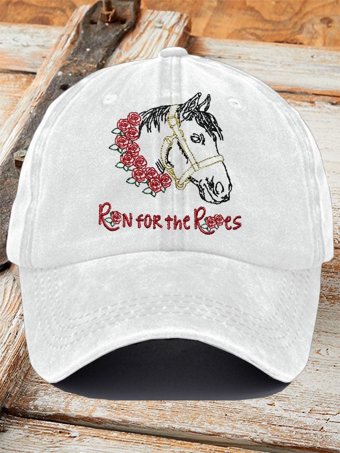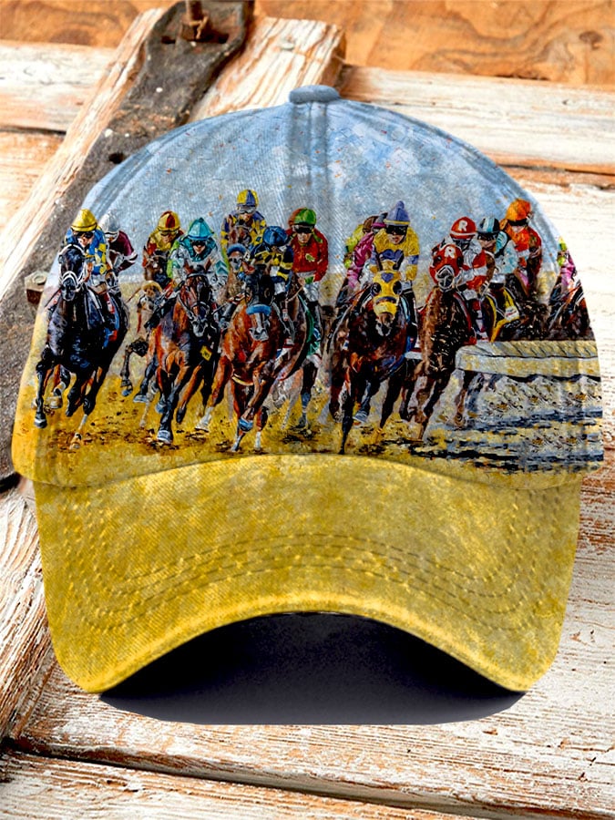 Unisex Distressed Washed Cotton Horse Racing Prints Hat