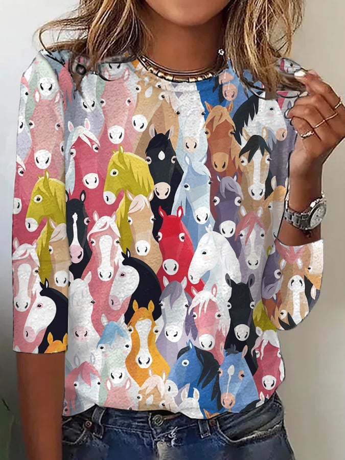 Women's Horse Racing Cocktail Printed Casual T-Shirt