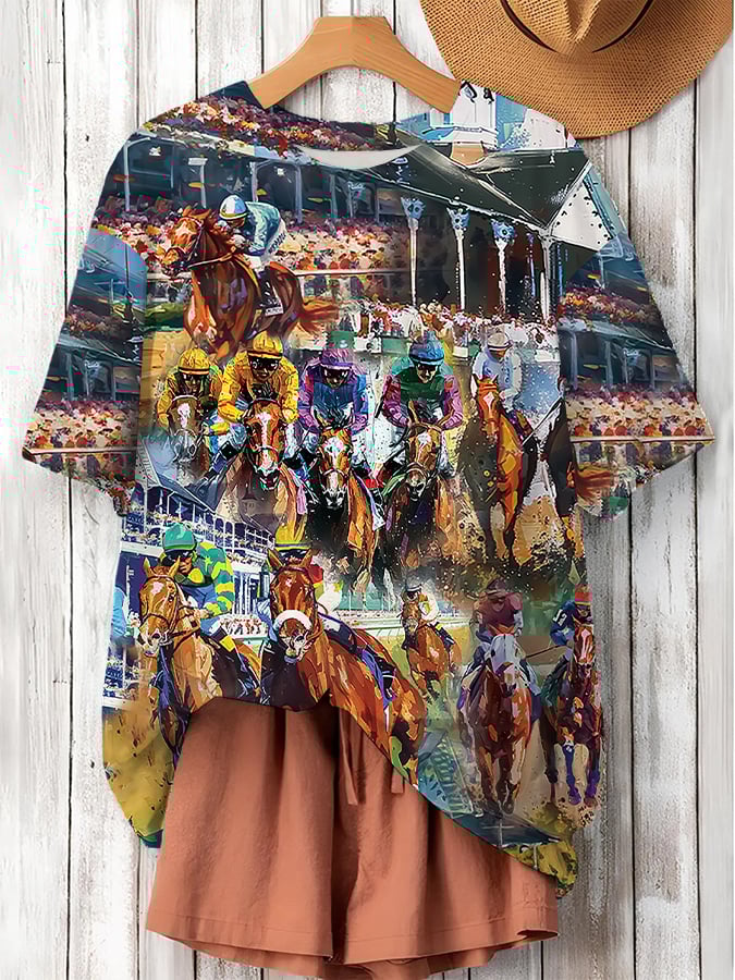 Women's Retro Derby Day Printed Short-Sleeved T-Shirt