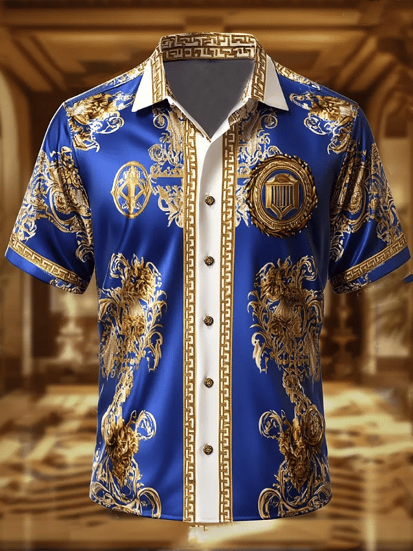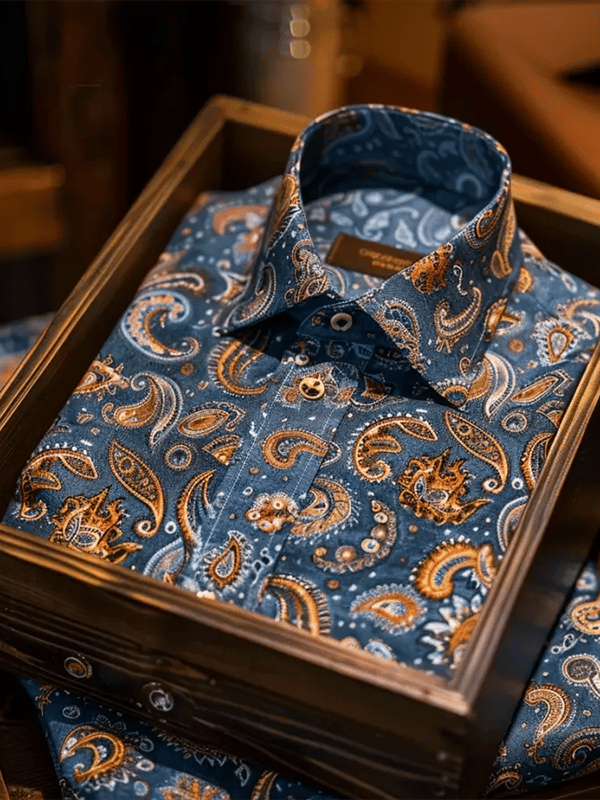 Men's Luxury Retro Contrast Pattern Long Sleeve Shirt