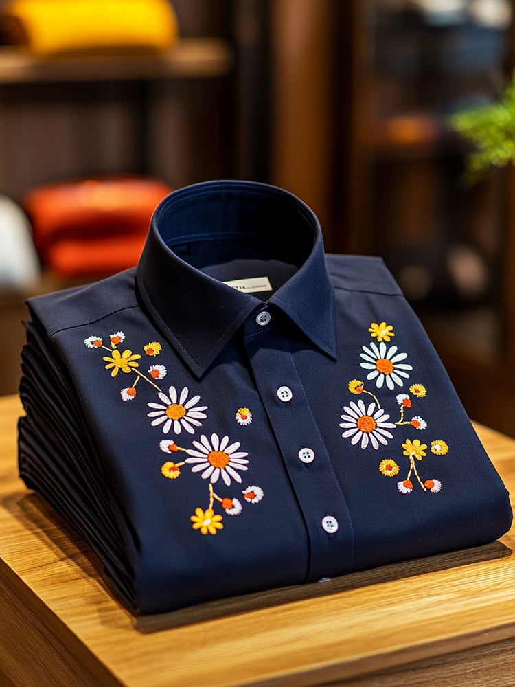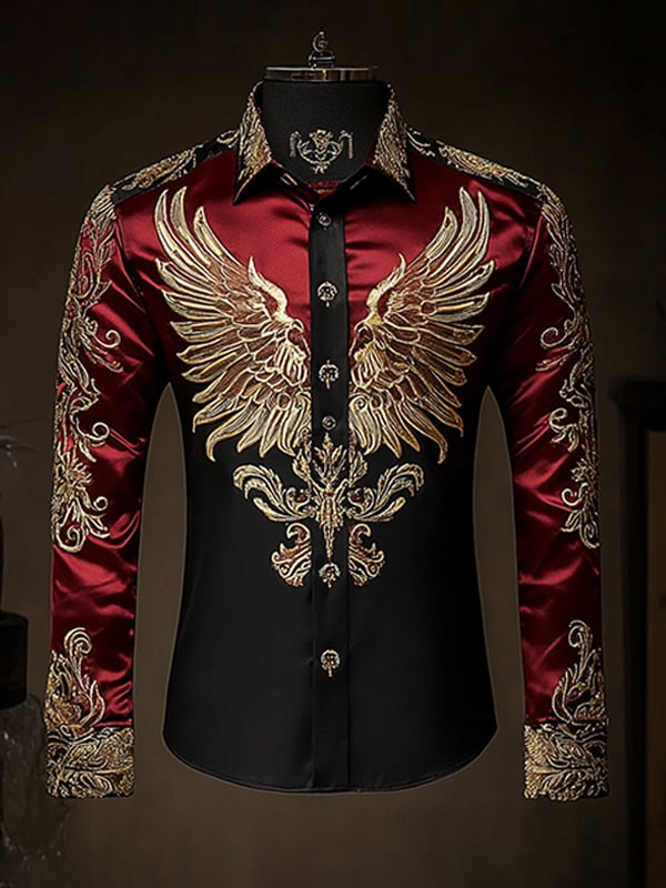 Men's Luxury Romantic Contrast Color Print Long Sleeve Shirt