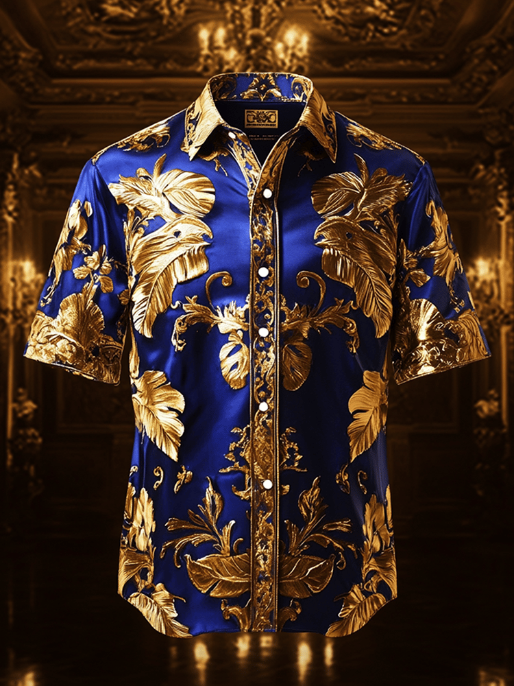 Men's Business Casual Floral Lapel Short Sleeve Shirt