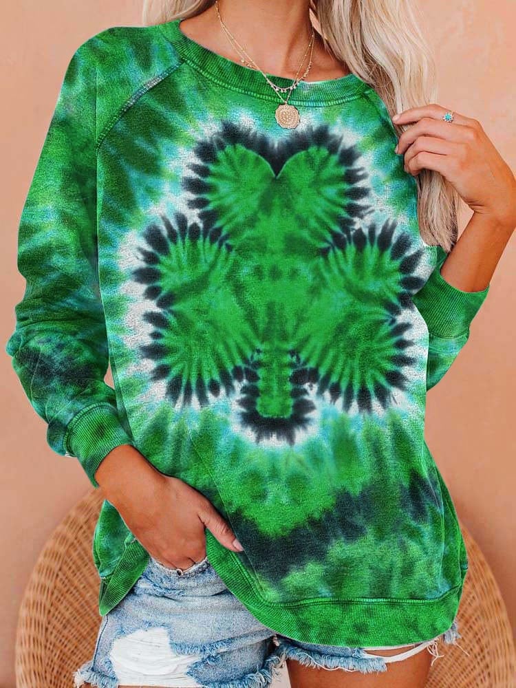 Women's Shamrock Tie Dye Print Casual Sweatshirt