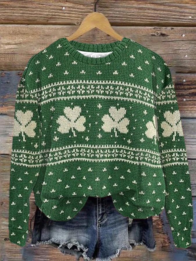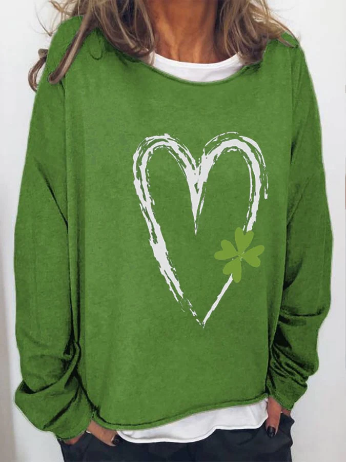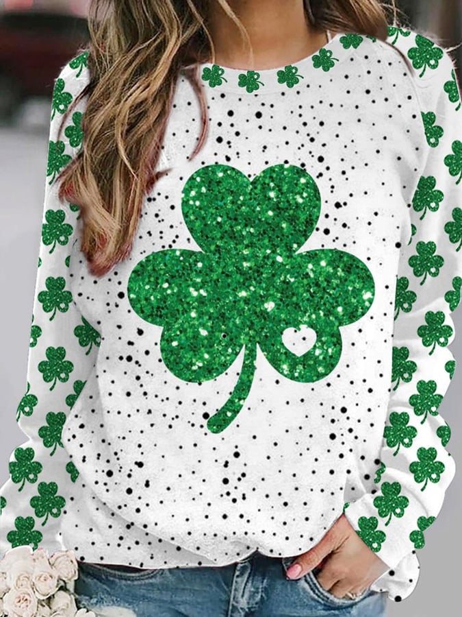 Women's St. Patrick's Day Clover Crew Neck Casual Sweatshirt