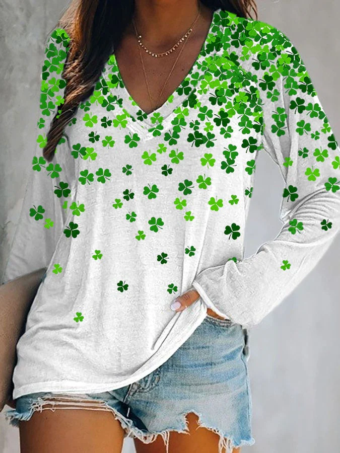 Women's St. Patrick's Day V-Neck Long Sleeve Top