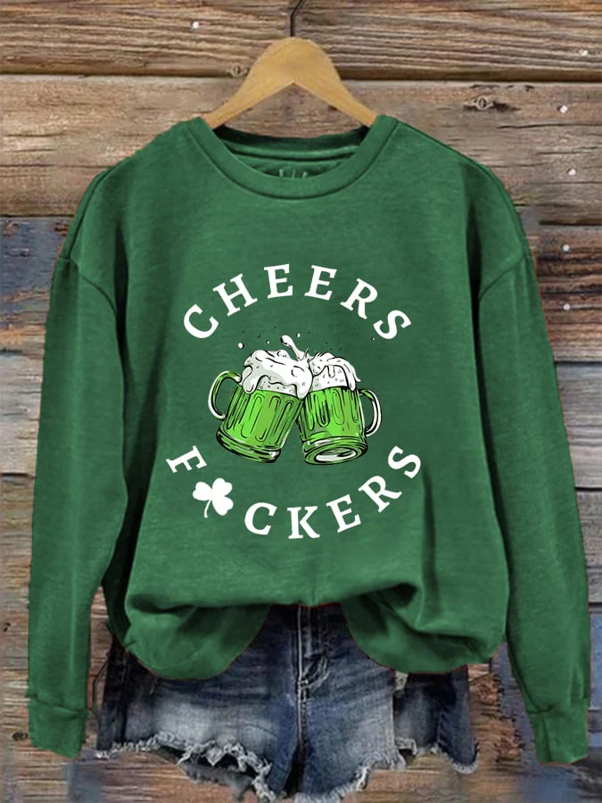 Women's St. Patrick's Day Funny Cheers Fuckers Shamrock Casual Sweatshirt