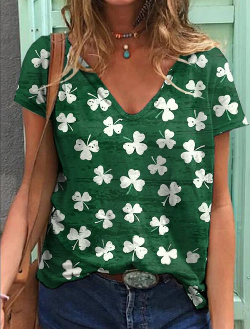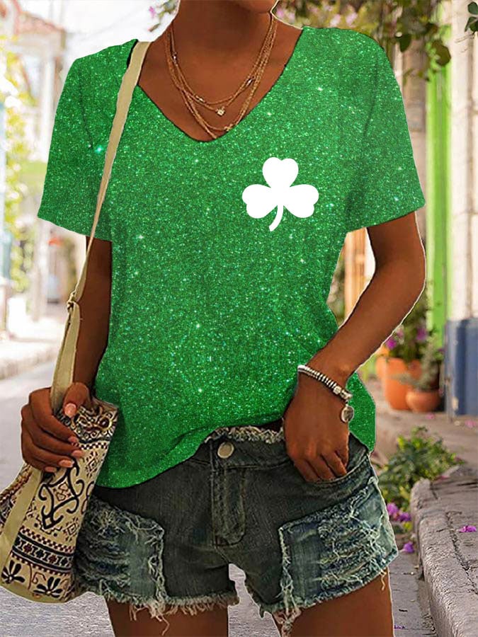 Women's St. Pat's Day Shamrock Print T-Shirt