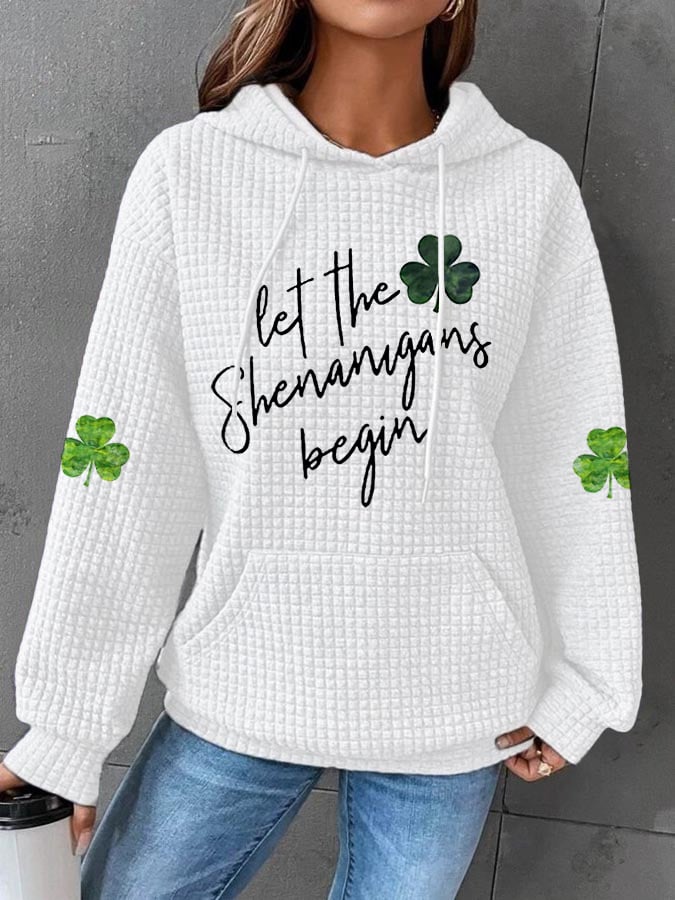 Women's Let The Shenanigans Begin Lucky Shamrock Waffle Hoodie
