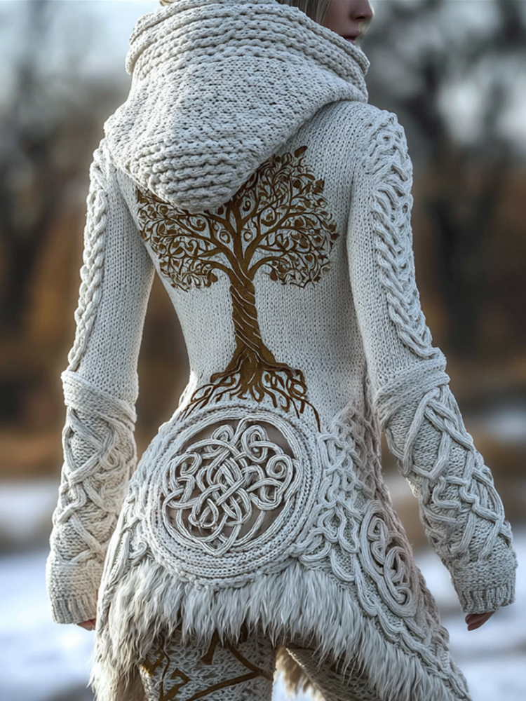 Women's Vintage Viking Tree Of Life Cozy Knit Hooded Sweater