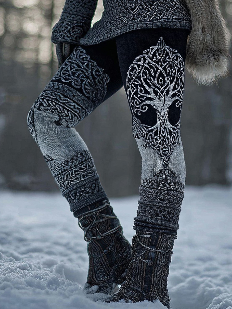 Vintage Viking Tree Of Life Celtic Knot Art Knit Cozy Leggings