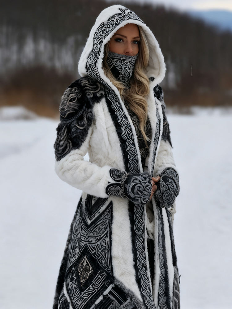 Women's Viking Celtic Knot Inspired Art Plush Warm Hooded Jacket