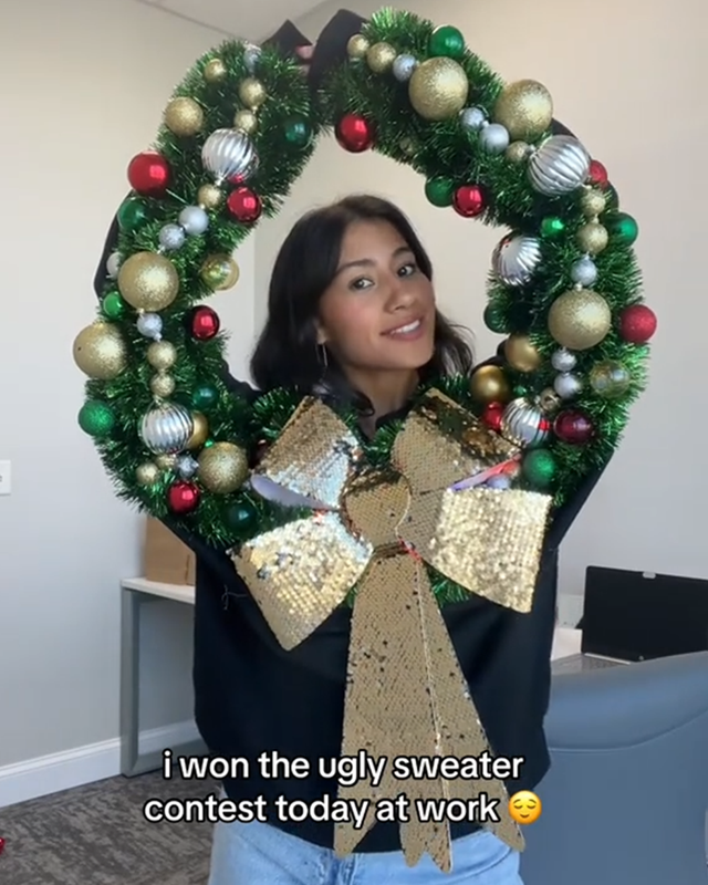 Women's Christmas-themed embroidered elegant knit sweater dress 4575