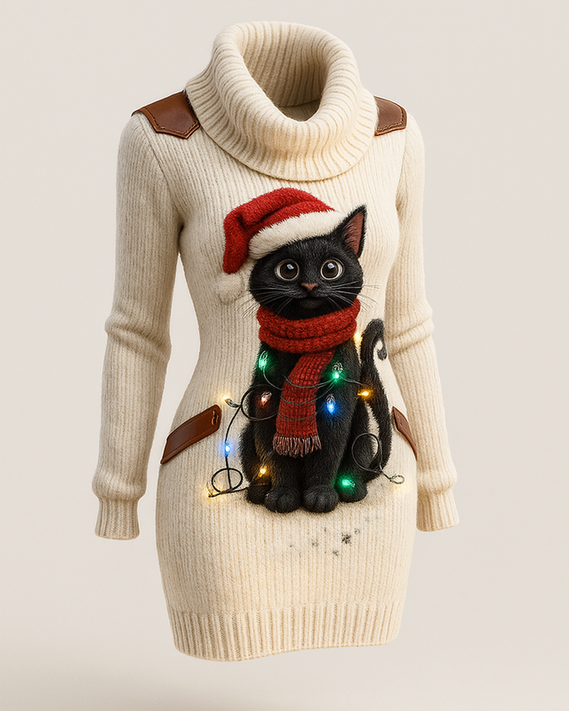 Women's Christmas-themed embroidered elegant knit sweater dress 1910