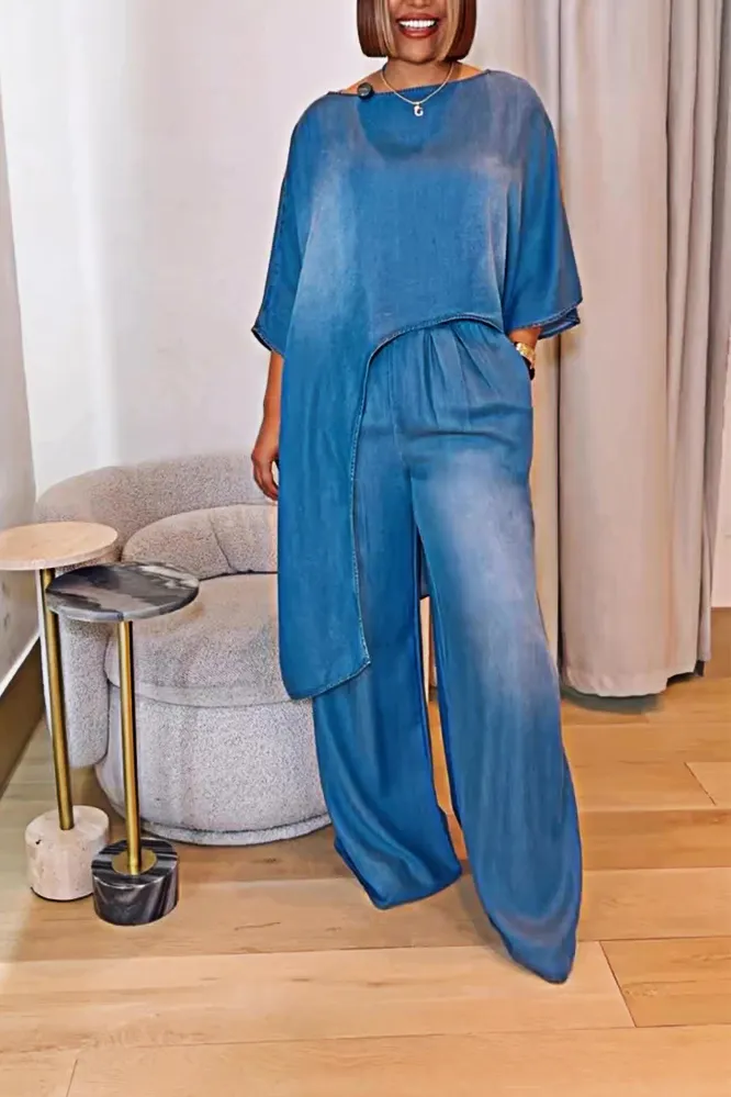 Women's Fashion Gradient Irregular Top and Pants Two Piece Set