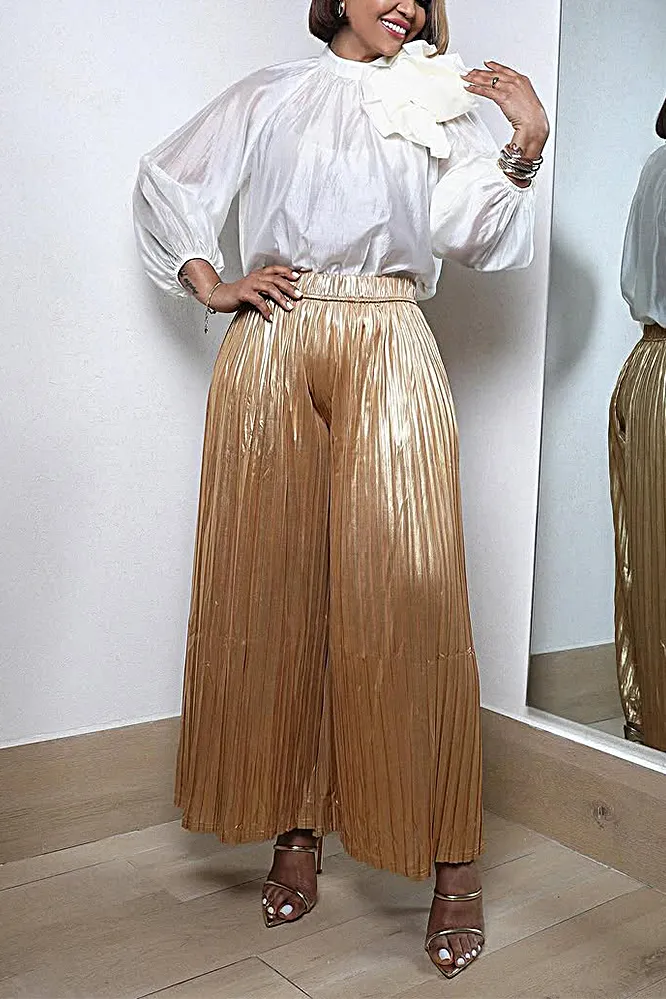 Women's Fashion Shirts and pleated Pants Two Piece Set