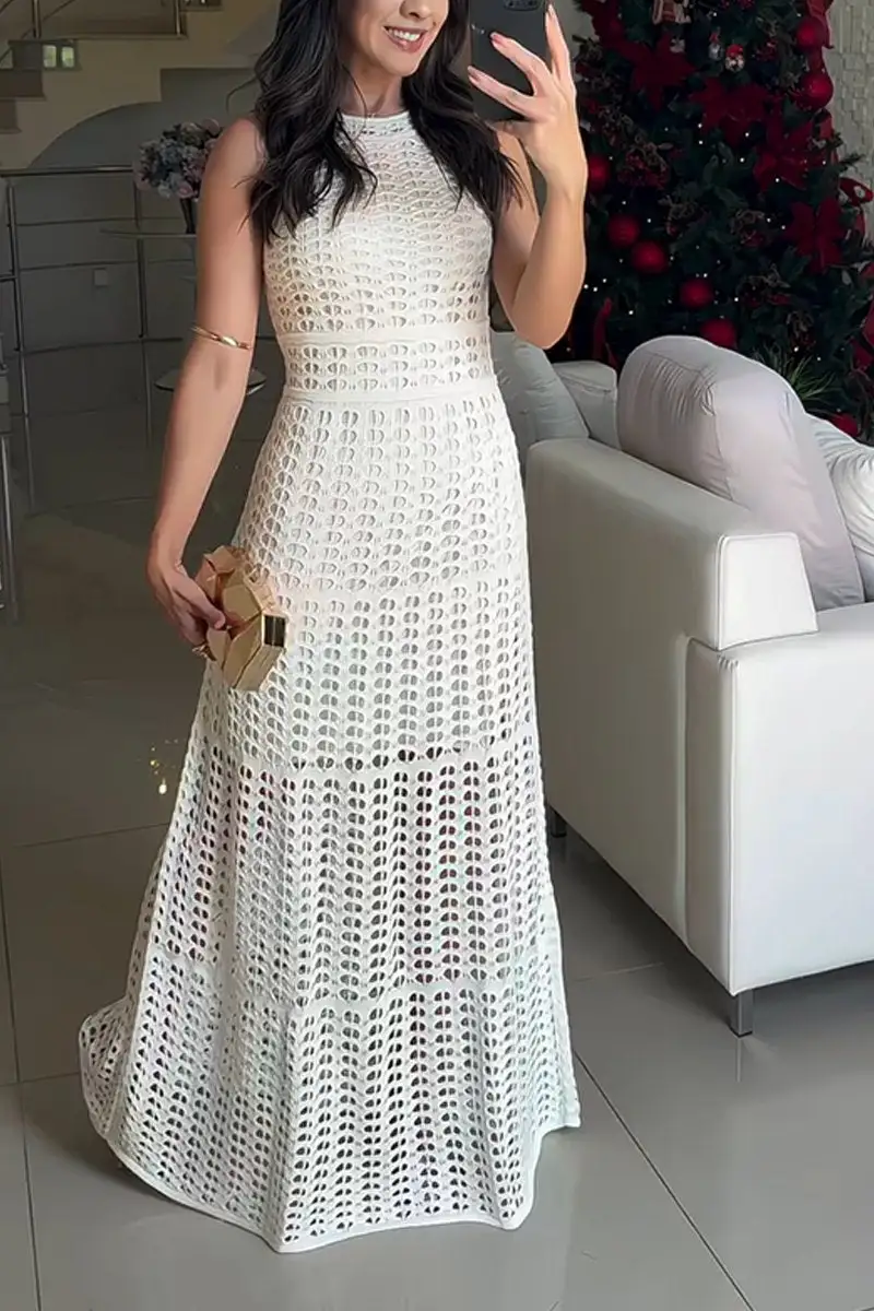 Women's Elegant Halter Neck Hollow Knitted Resort Dress