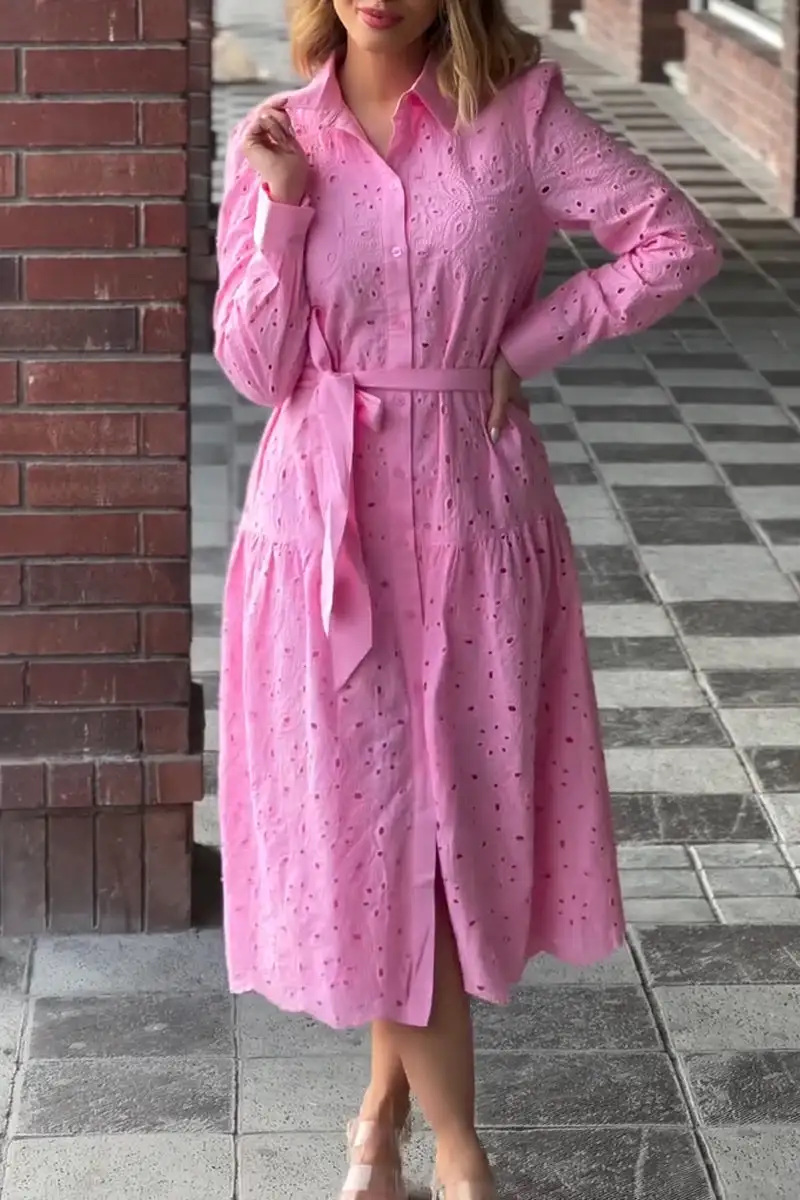 Women's Casual and Comfortable Solid Color Lapel Single Breasted Long Dress