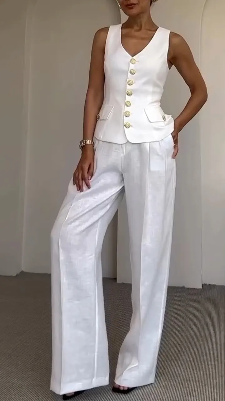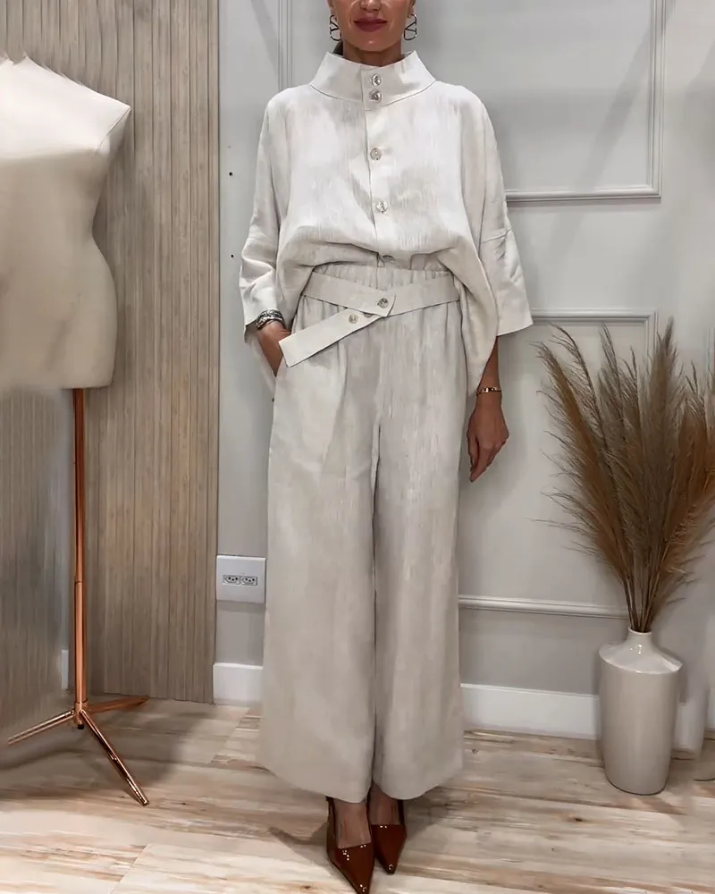 Women's Casual Irregular Long Sleeve Tops & Casual Wide Leg Suit Pants