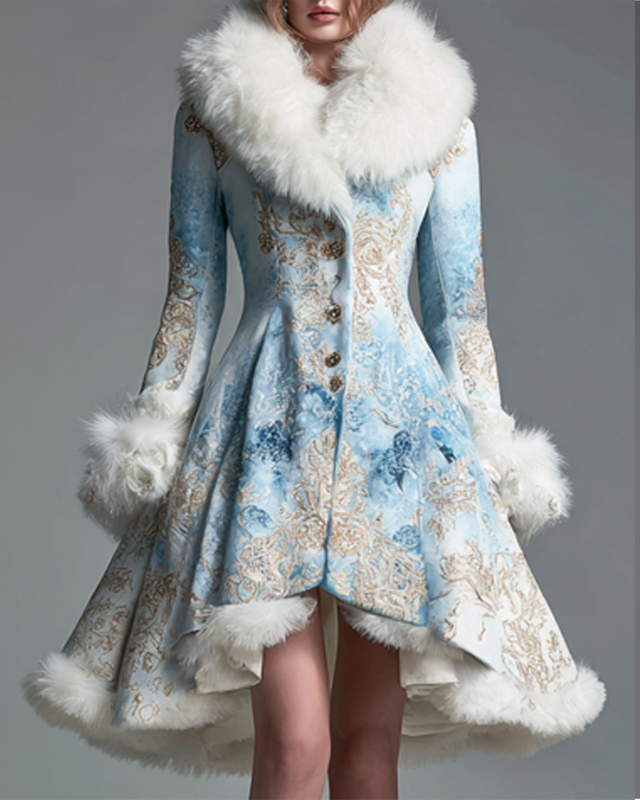 Women's elegant and comfortable Christmas-themed 3D embroidered fur collar warm coat 5186