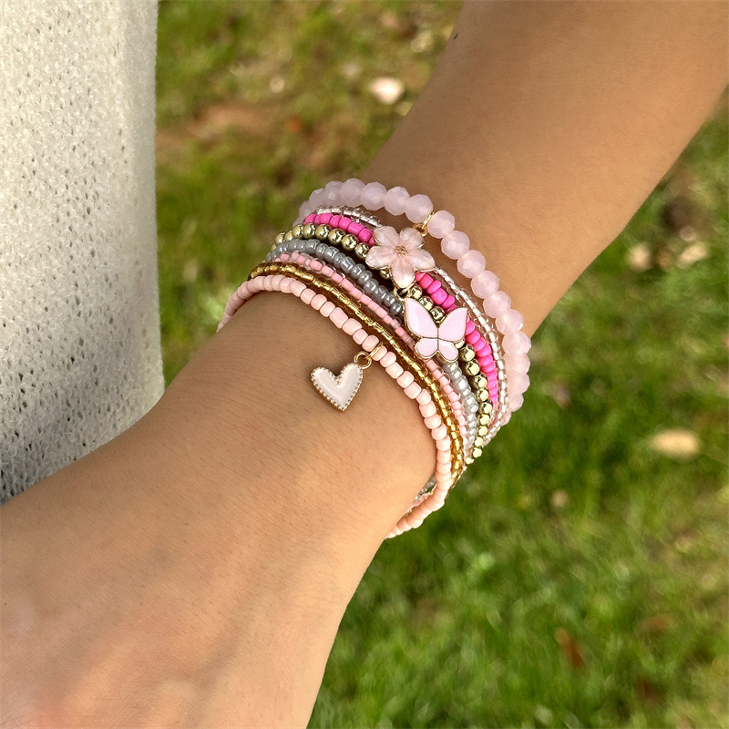 Bohemian 9-piece Butterfly, Flower And Heart Beaded Bracelet