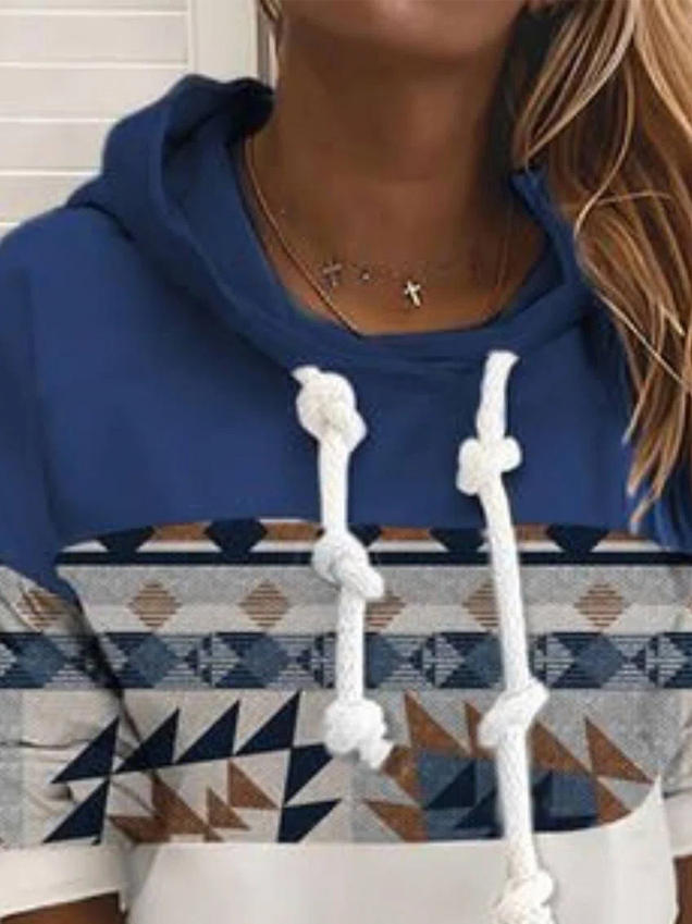 Casual Retro Pattern Printed Long-Sleeved Hooded Sweatshirt