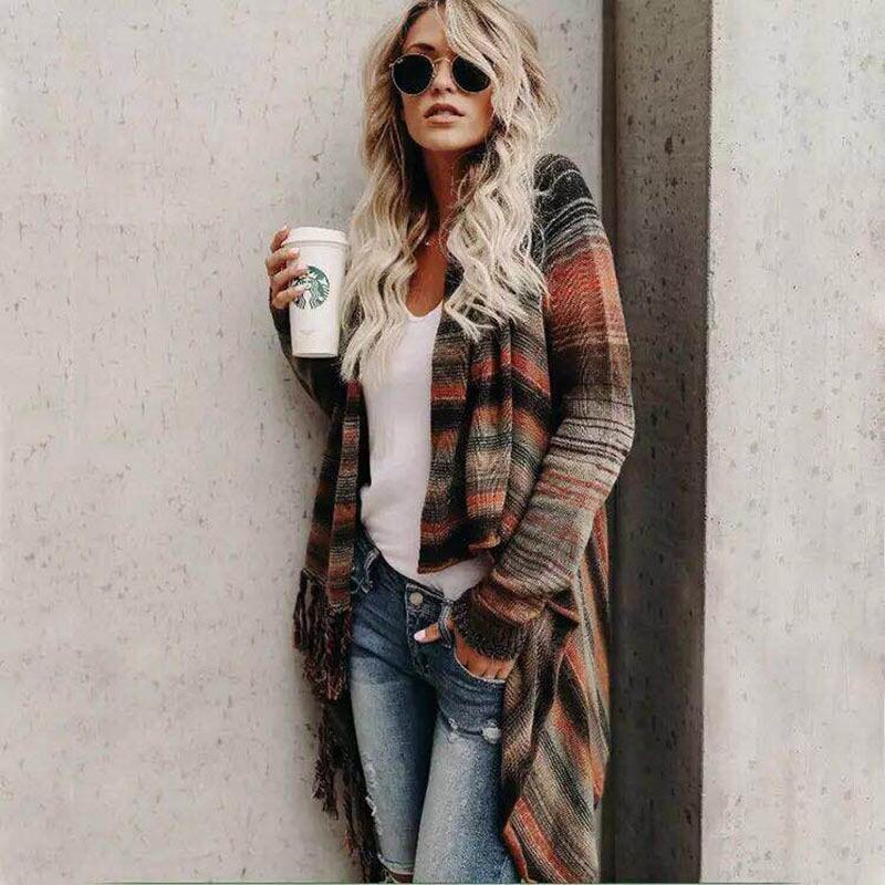 Mayoulove Chic printed loose asymmetrical cardigan coat