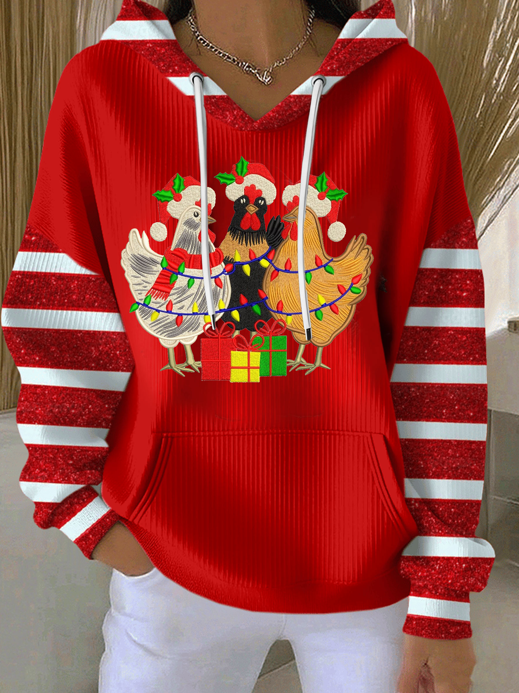 Chicken Christmas Art Casual Hoodie Sweatshirt
