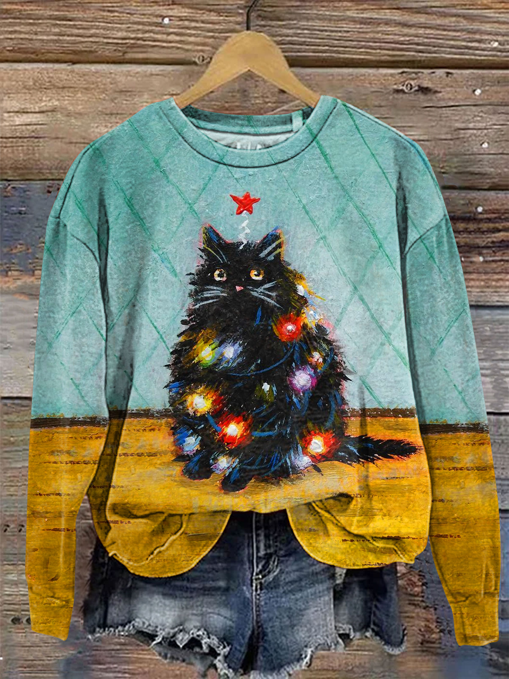 Christmas Cat Light Art Print Casual Sweatshirt