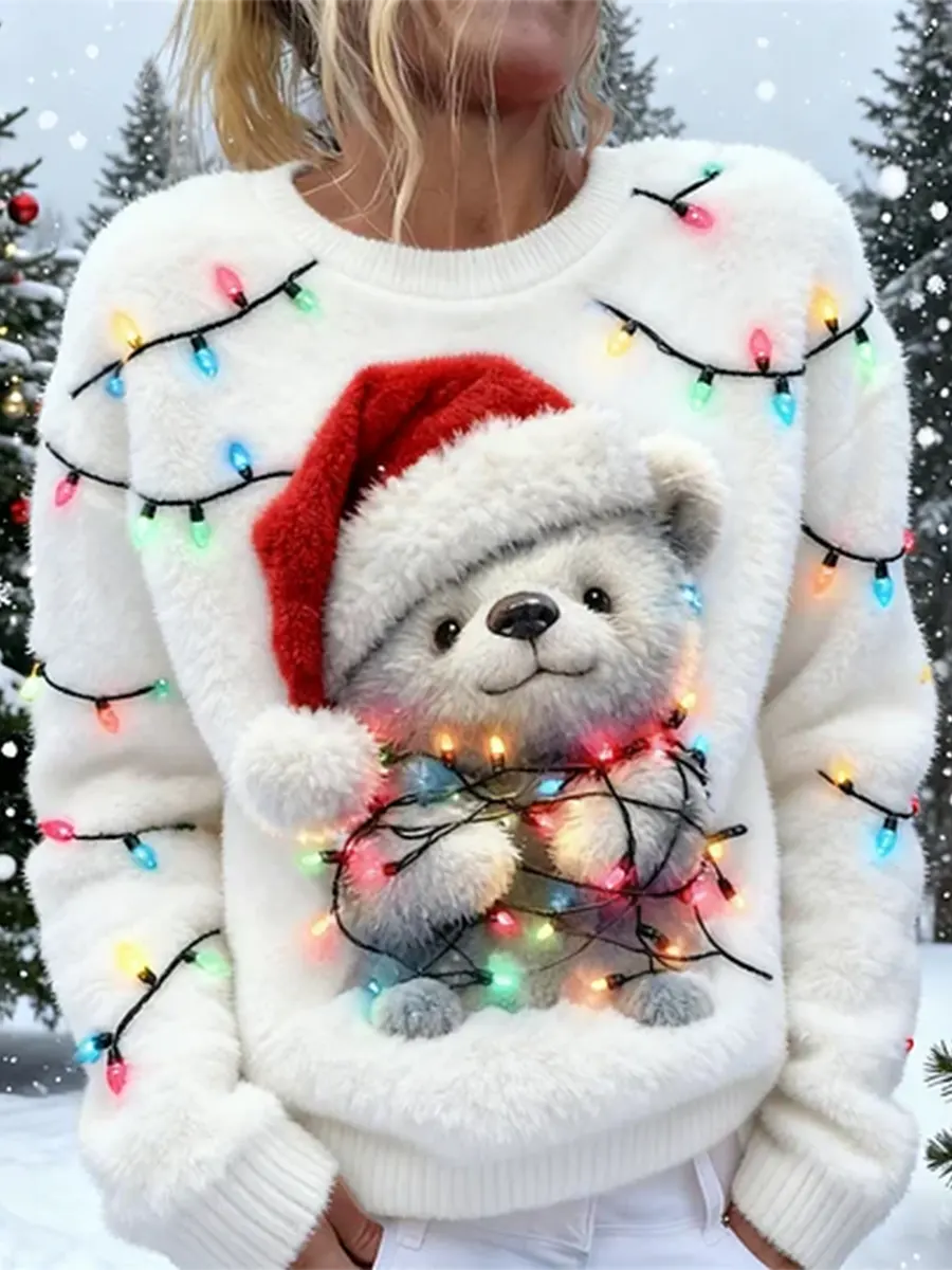 Christmas Cute Otter Art Print Casual Plush Sweatshirt