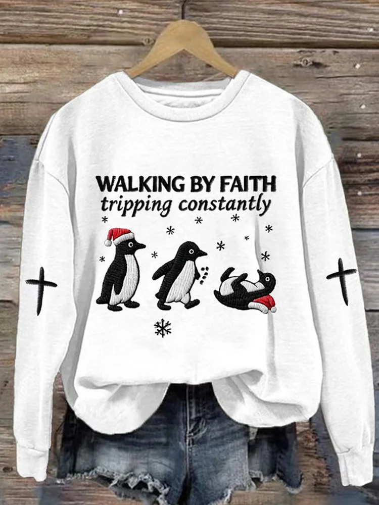 Christmas Cute Penguin Art Print Casual Sweatshirt