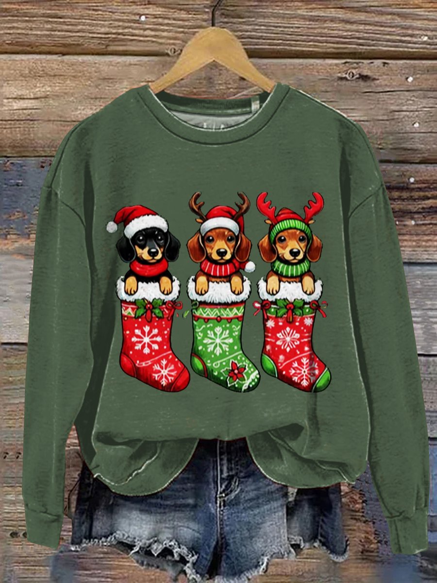 Christmas Dog Art Print Casual Sweatshirt