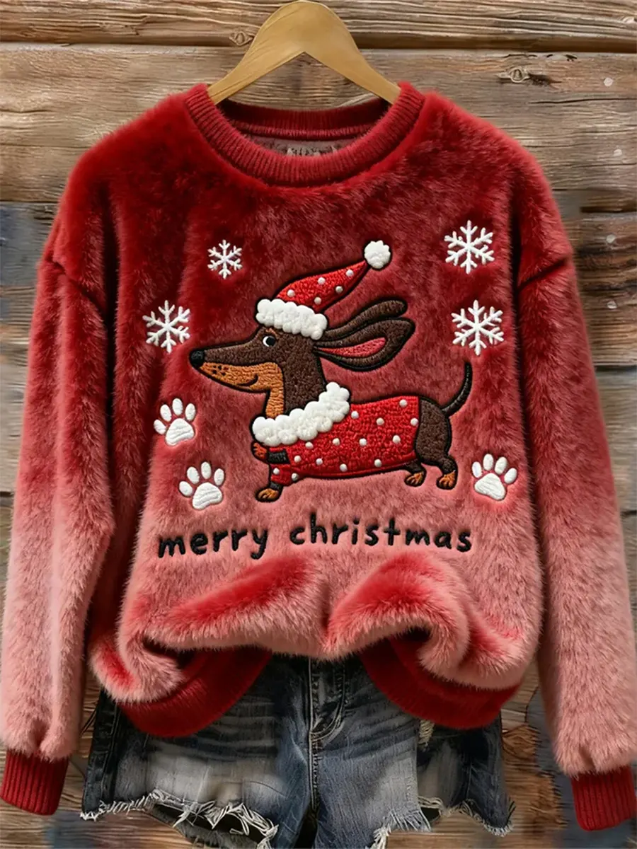 Christmas Dog Cute Art Print Casual Plush Sweatshirt