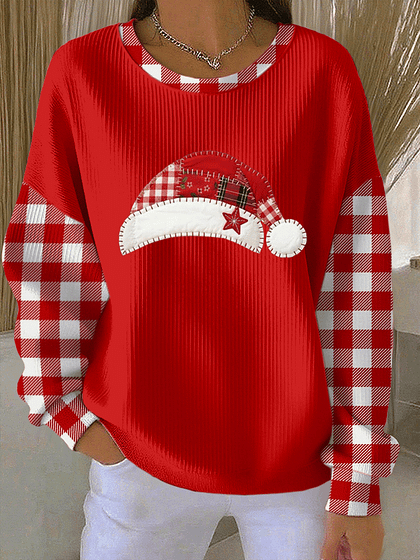 Christmas Hat Red Plaid Art Print Casual Sweatshirt