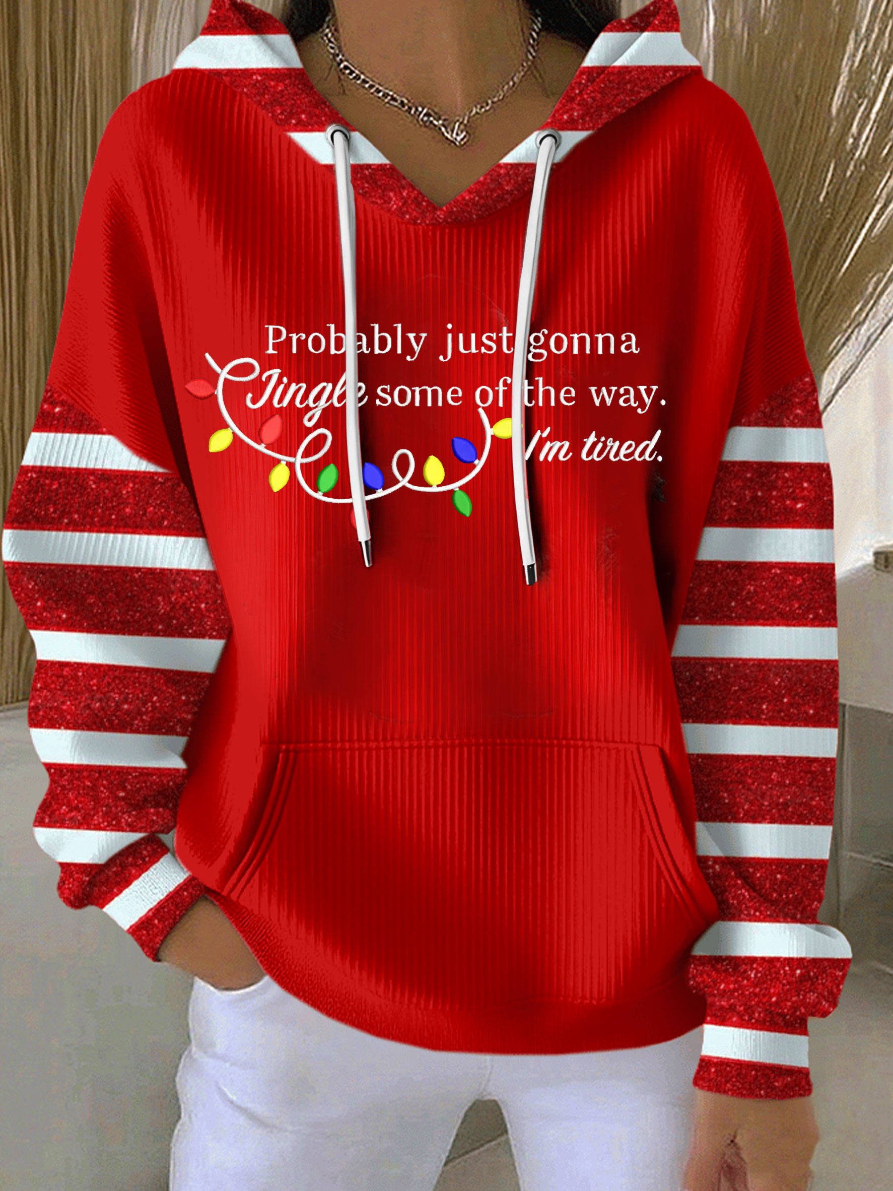 Christmas Jingle Song Lights Embroidery Funny Art Casual Hoodie Sweatshirt
