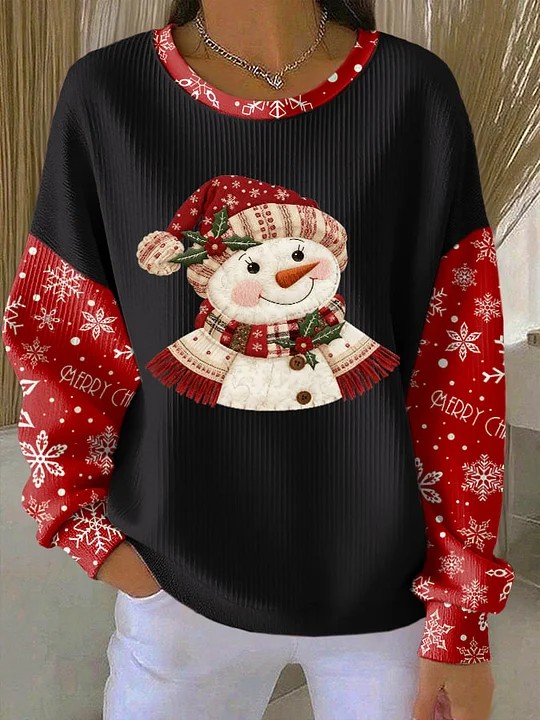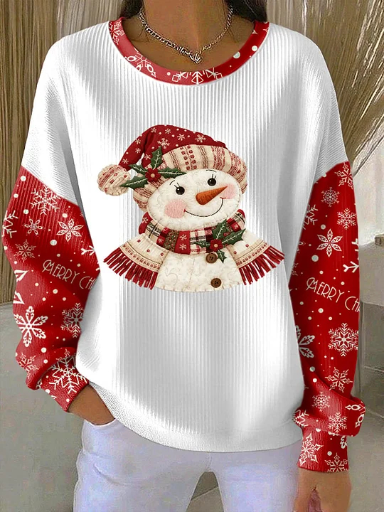 Christmas Snowman Snowflake Art Print Casual Sweatshirt