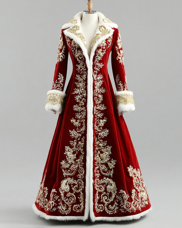 CHRISTMAS THEMED ELEGANT EMBROIDERED WARM CONTRAST COLOR DRESS 6816