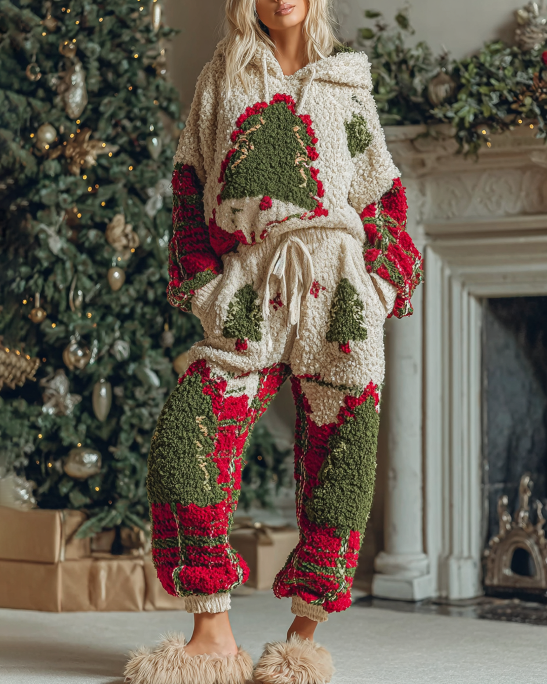 Christmas Themed Contrast Color Christmas Tree Knit Sweater and Pants Two-Piece Set 7527