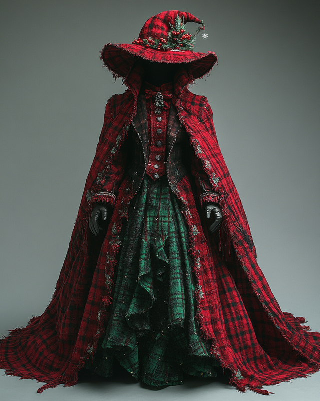 Christmas Themed Voluminous Cape Dress 4017