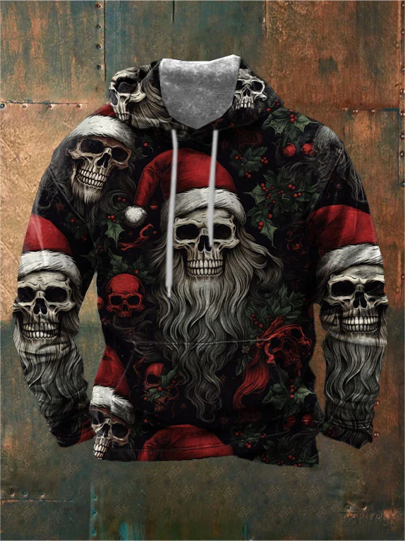 Christmas Vintage Skeleton Horror Art Print Pattern Casual Hoodie Sweatshirt