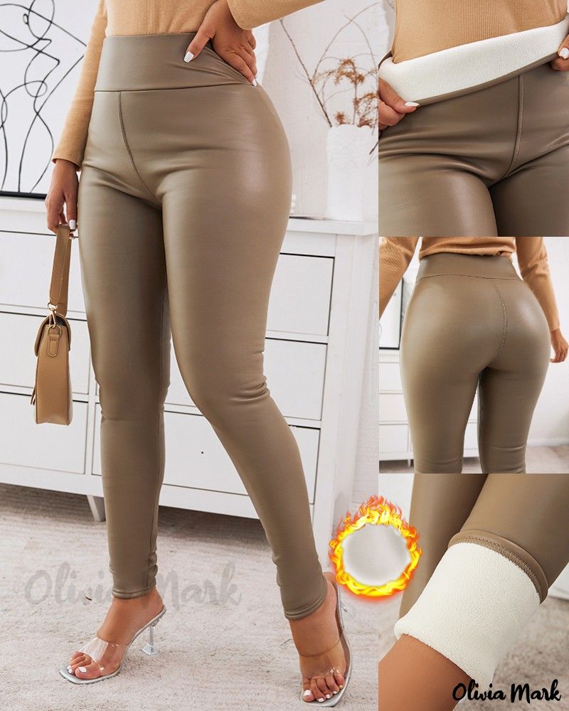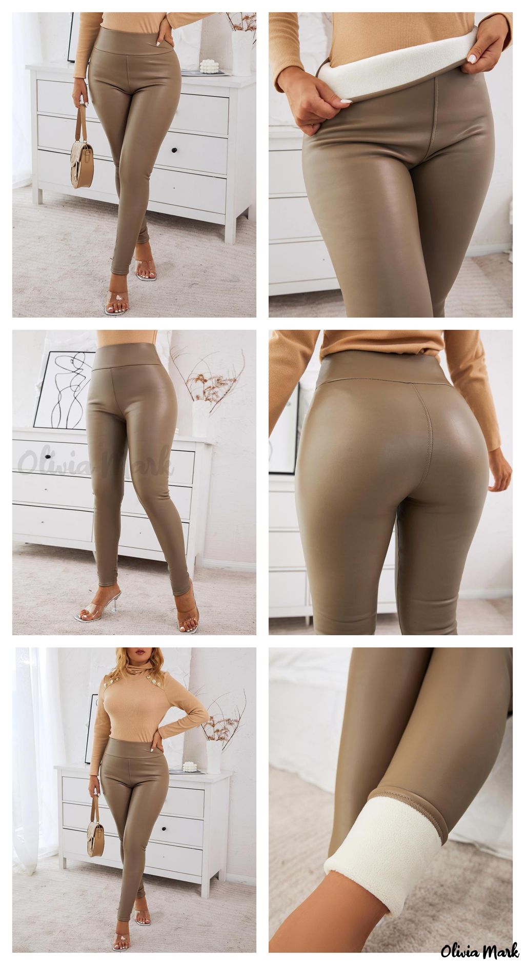 Olivia Mark - Premium PU Leather Thermal Leggings with Fleece Lining
