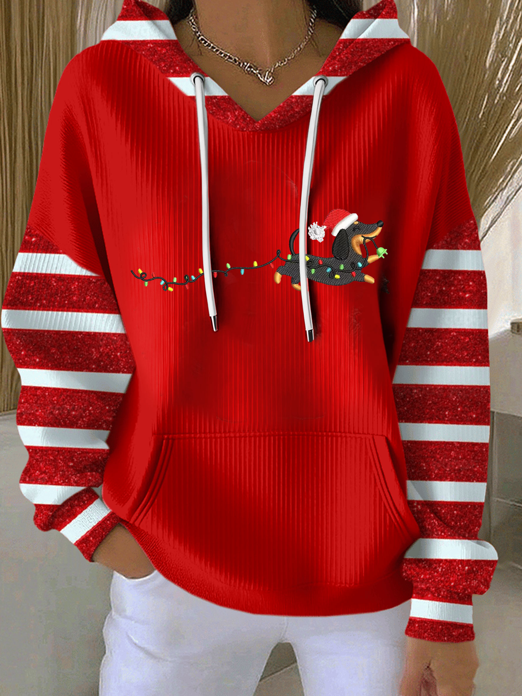 Cute Dachshund Dog Christmas Art Casual Hoodie Sweatshirt