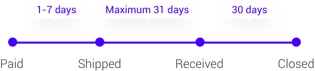 - Once the return package is sent, it typically takes 7-30 days to reach our warehouse, depending on the distance between the warehouse and your location.