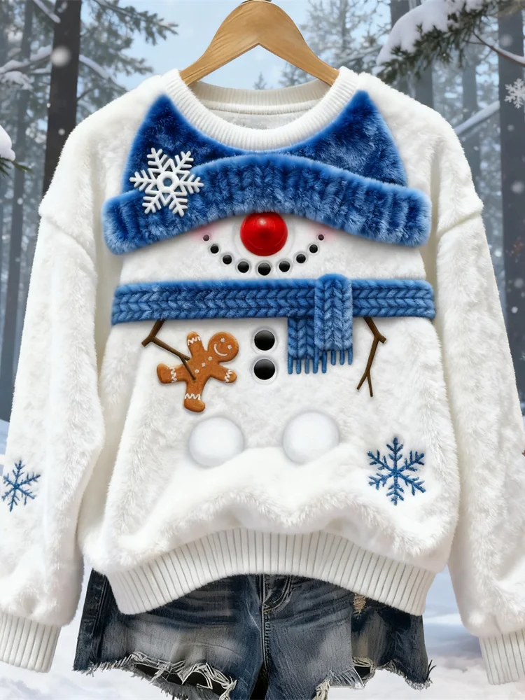 Funny Cute Snowman Art Casual Cotton Plush Sweatshirt