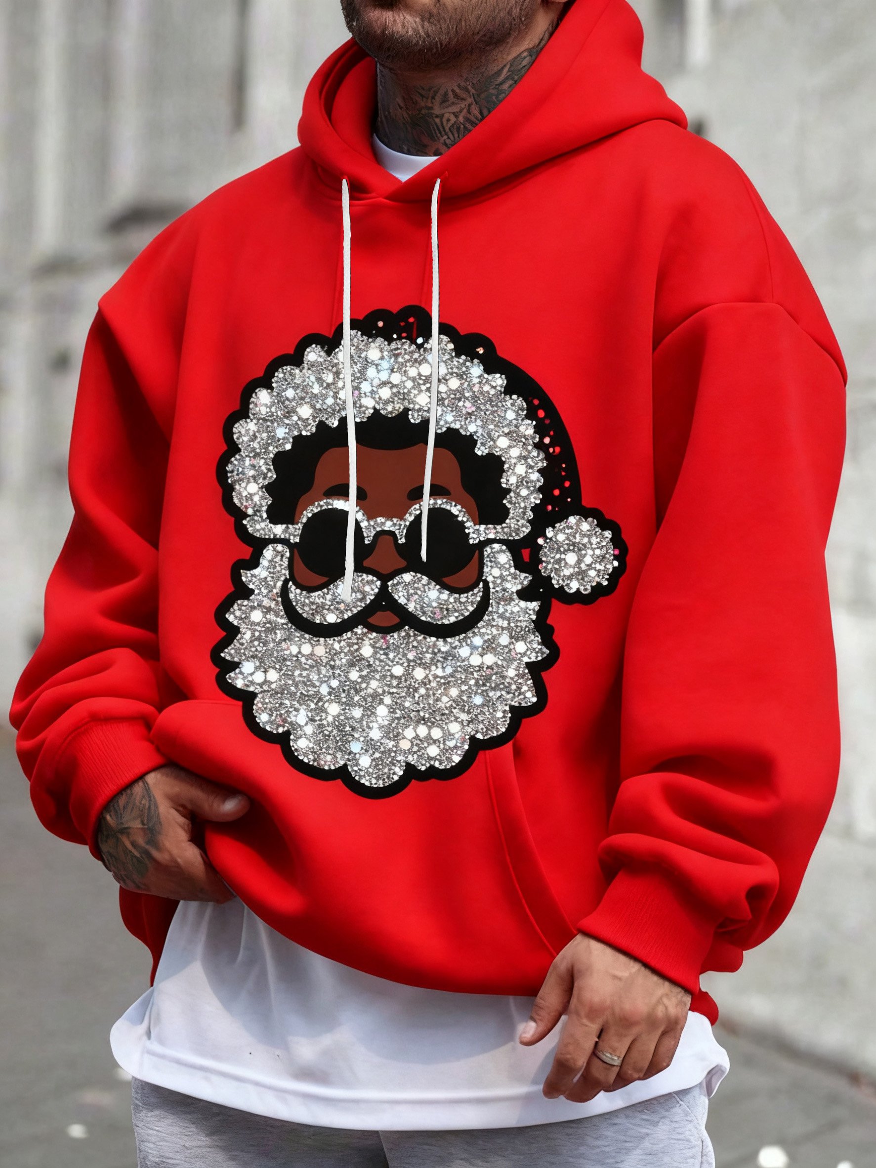 Men's African American Christmas Print Crew Neck Hooded Sweatshirt