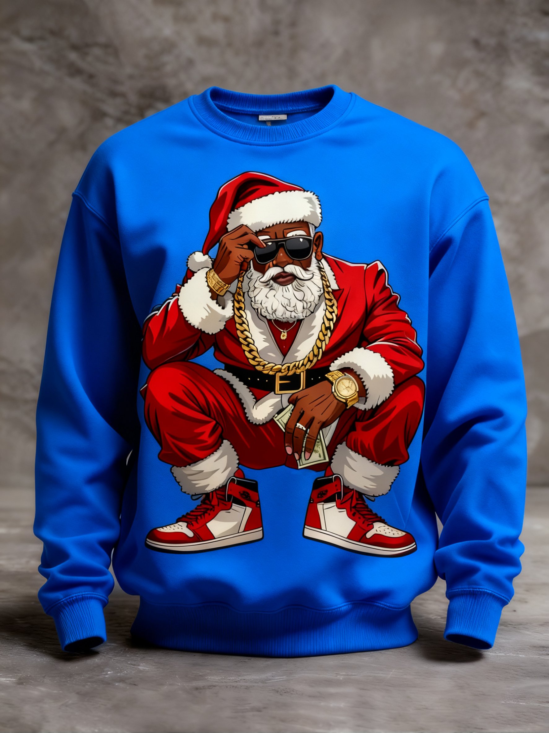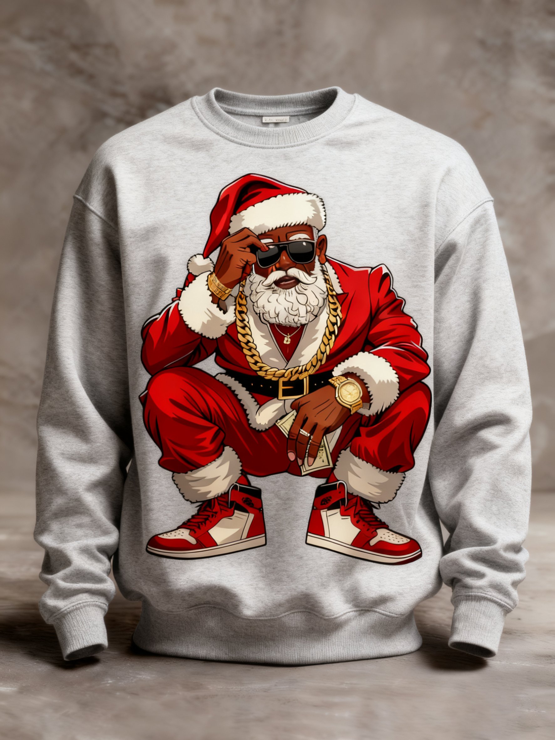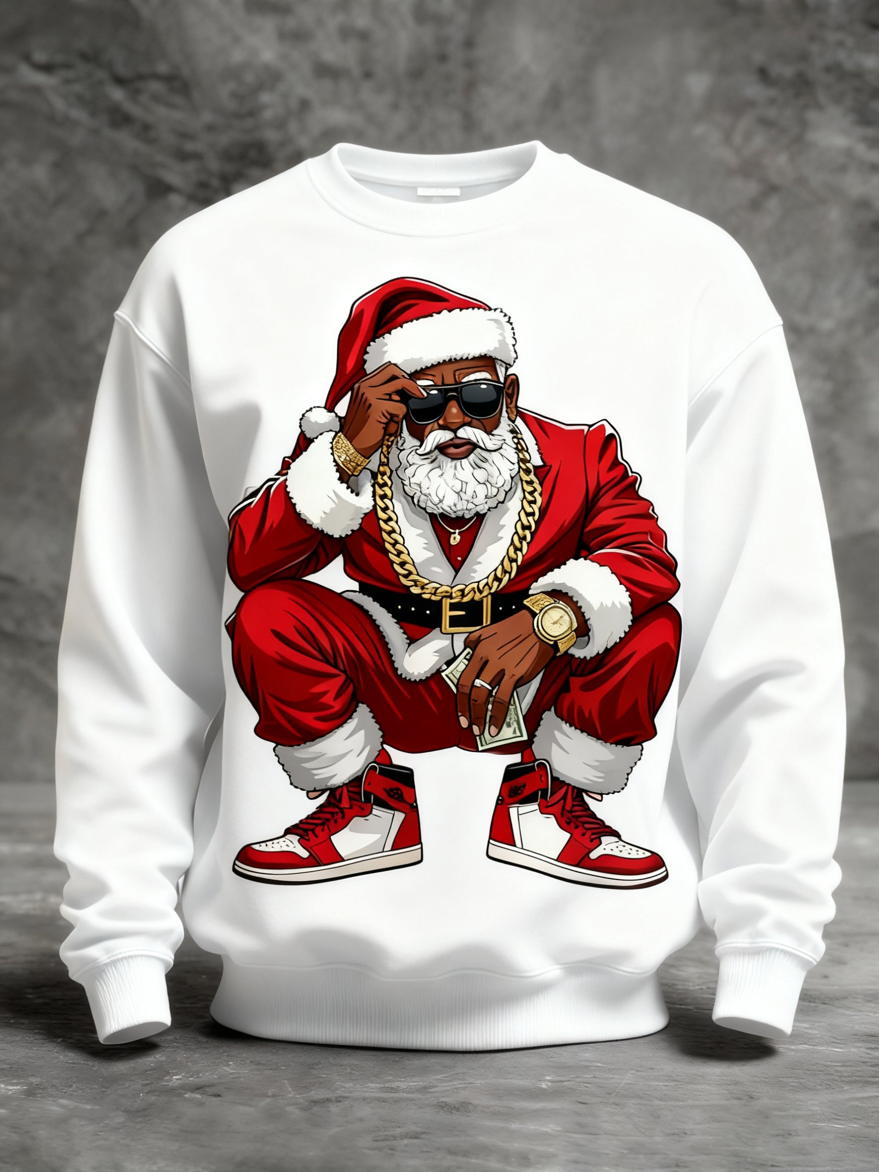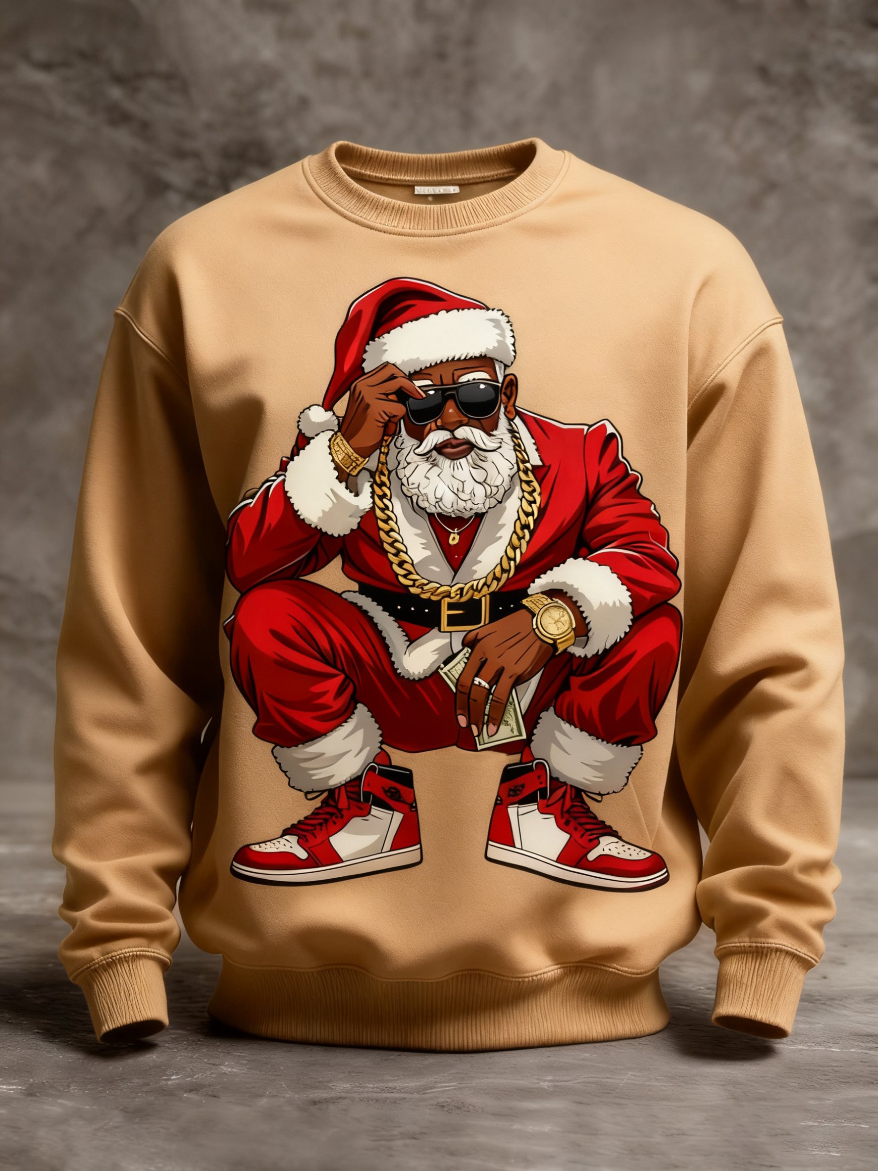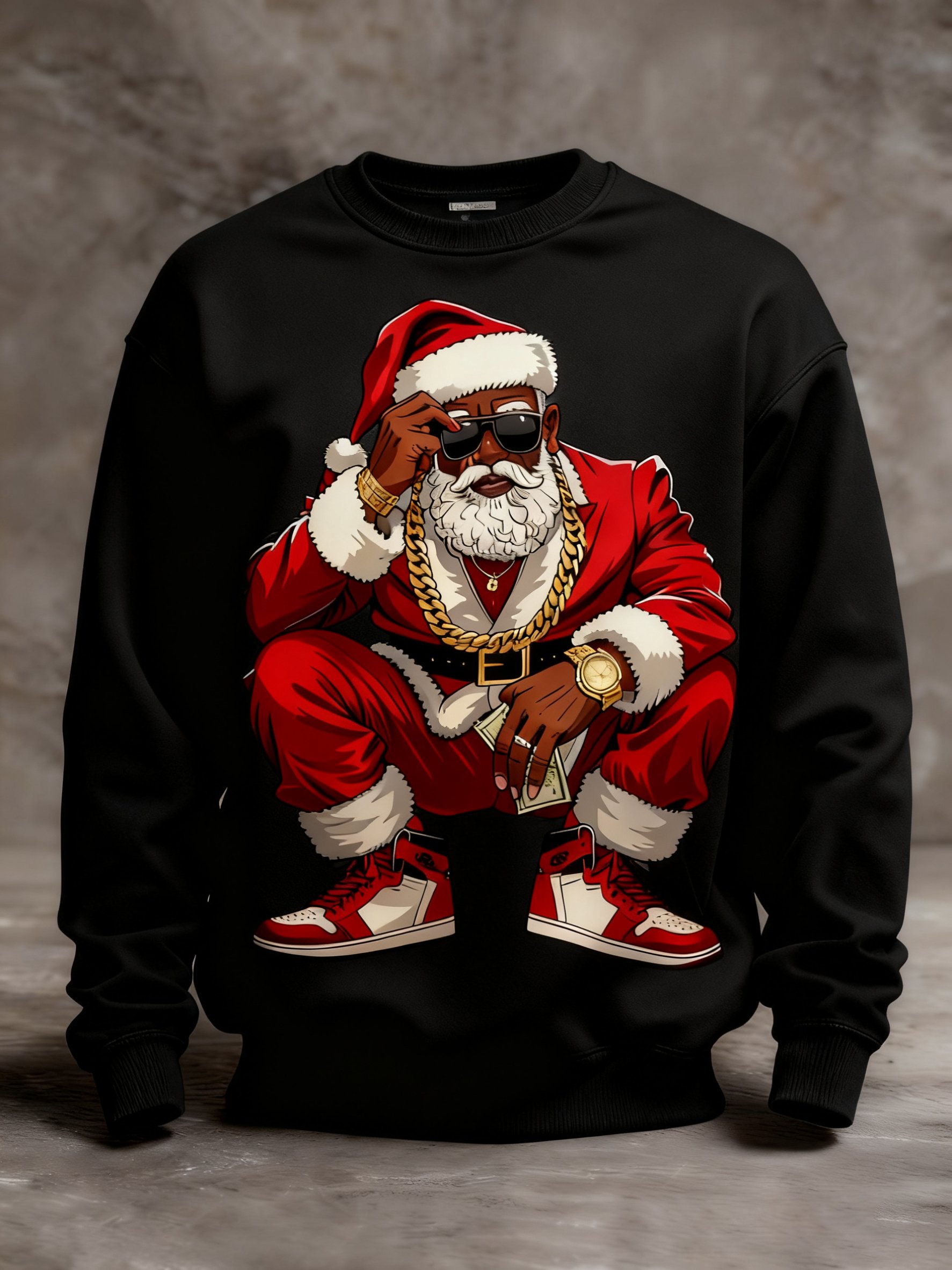 Men's African American Santa Claus Christmas Print Crew Neck Shirt