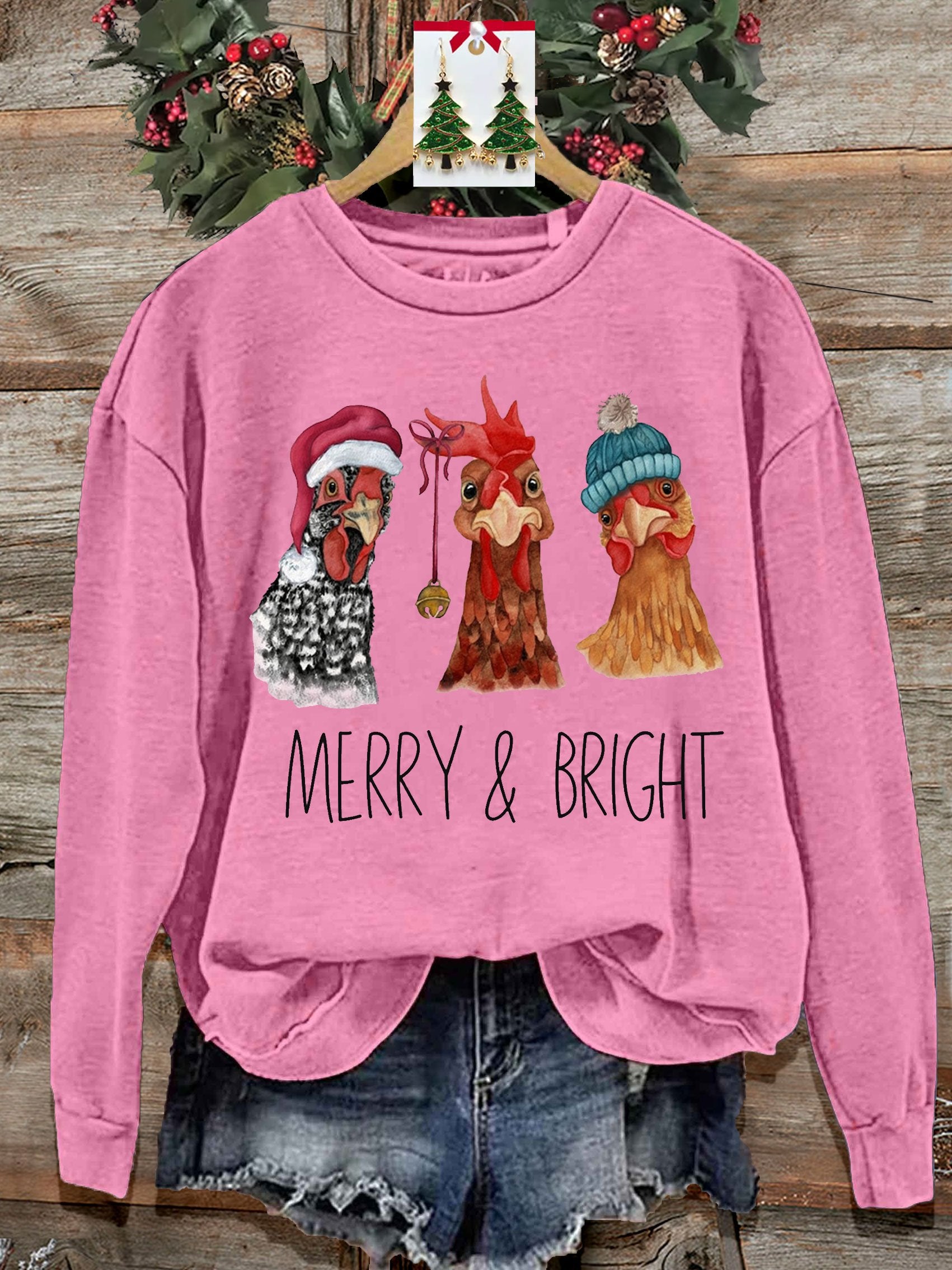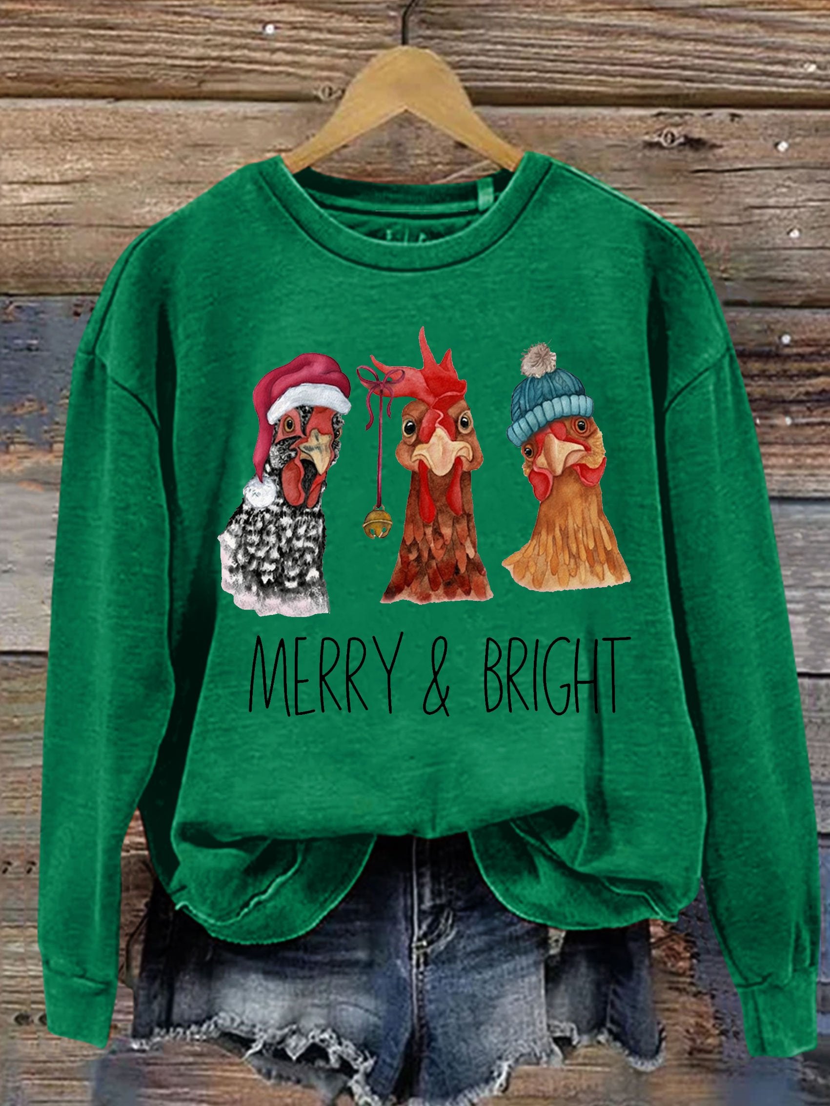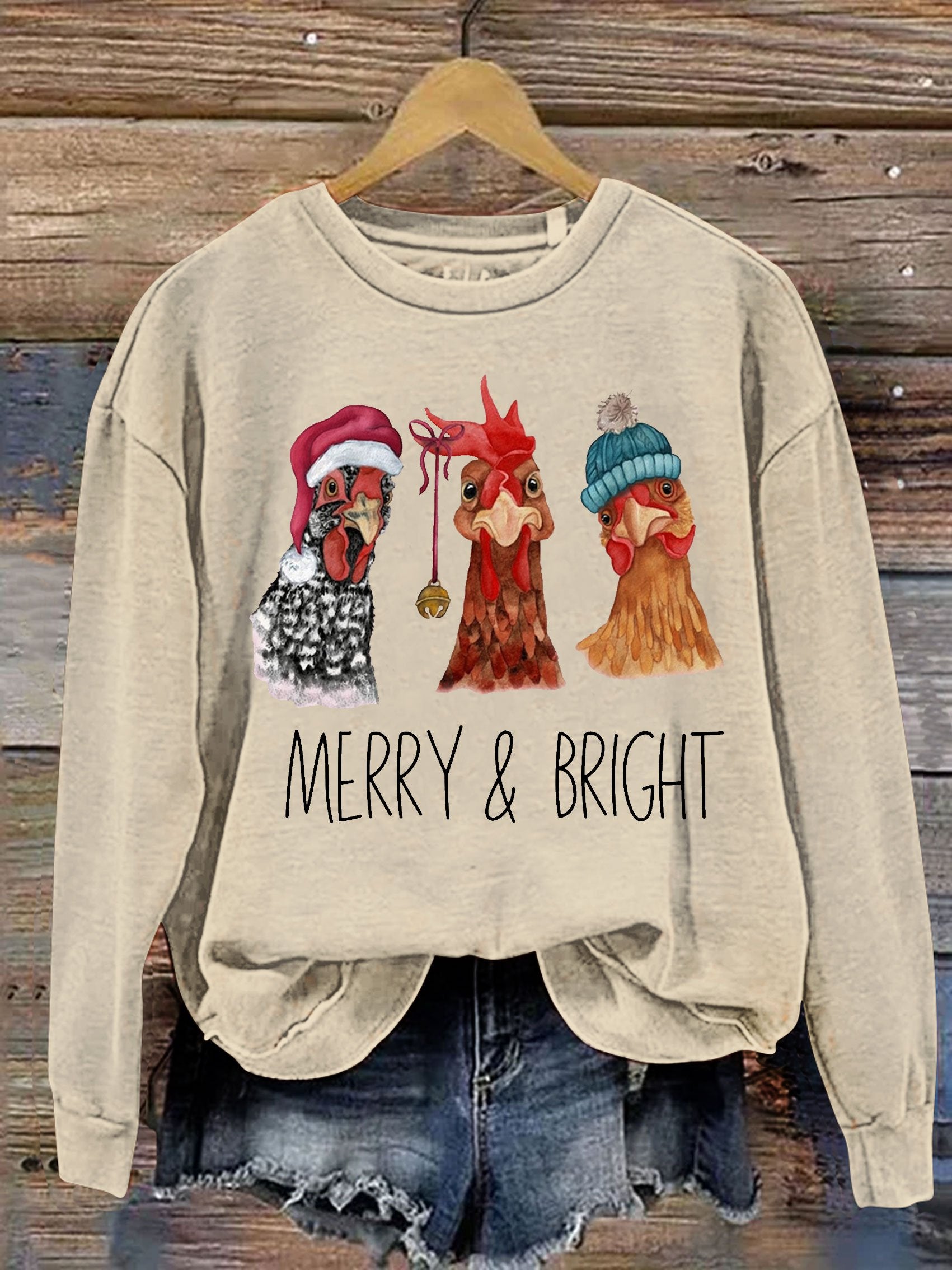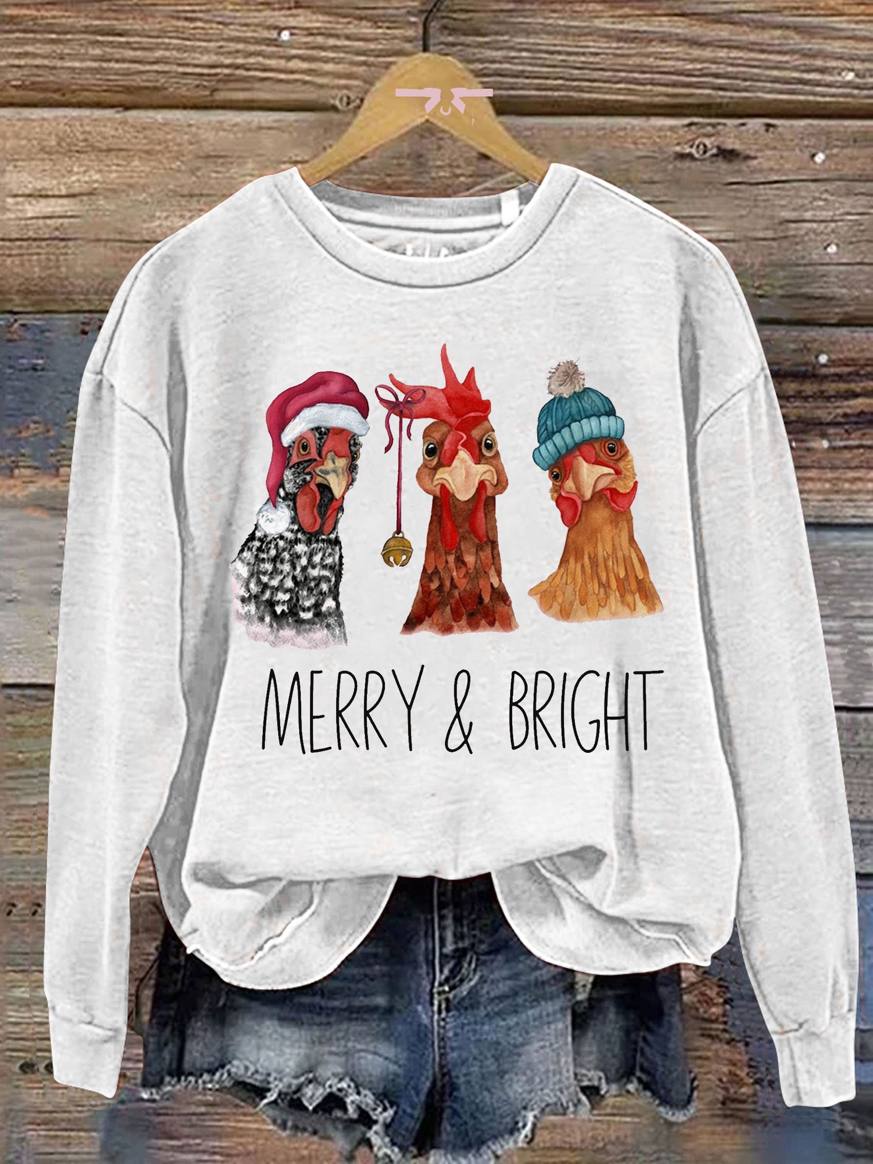 Merry & Bright Cute Chickens Christmas Art Print Casual Sweatshirt