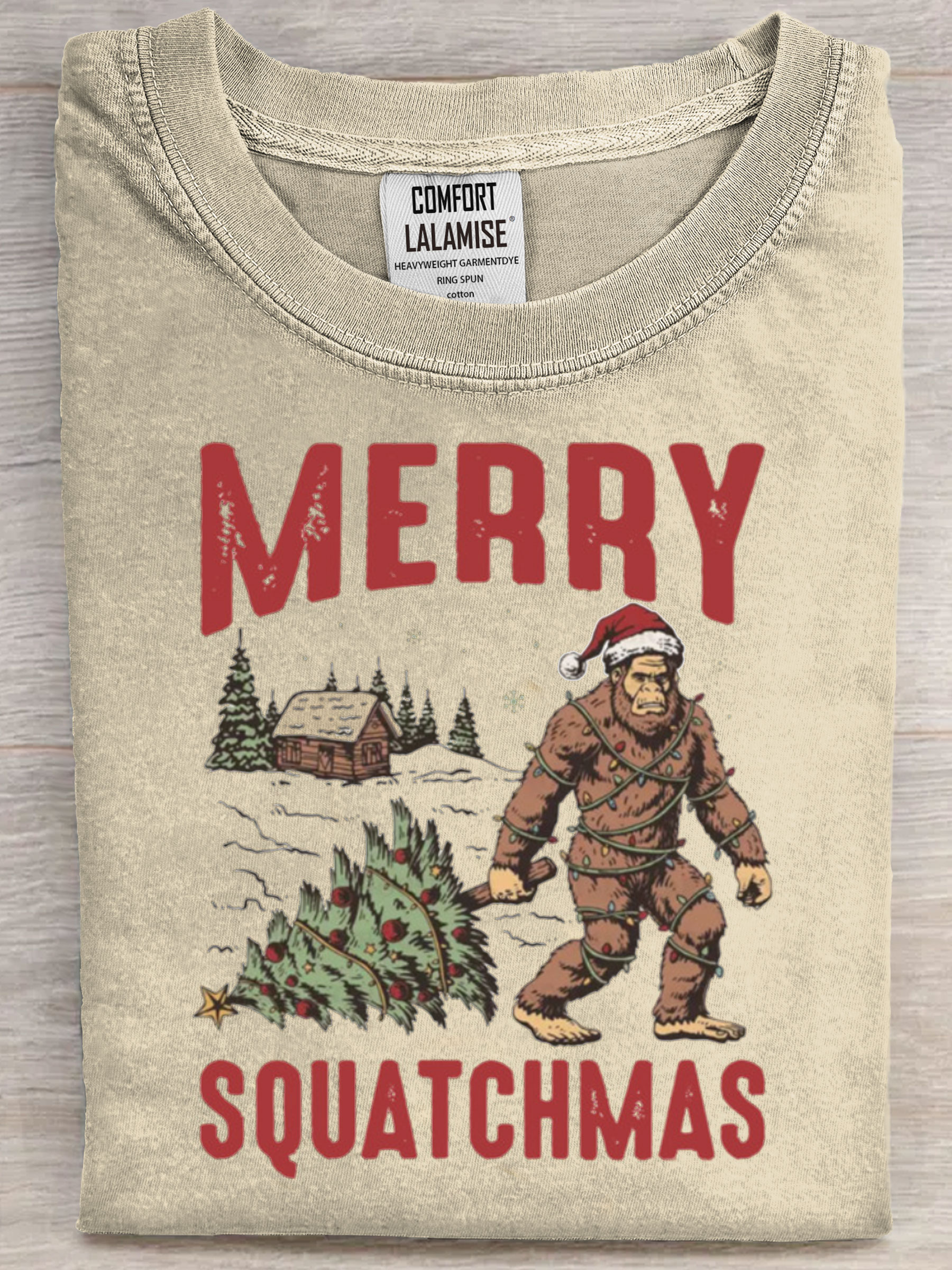 Merry Squatchmas Bigfoot Christmas Tree Art Print Casual Short Sleeve T-shirt