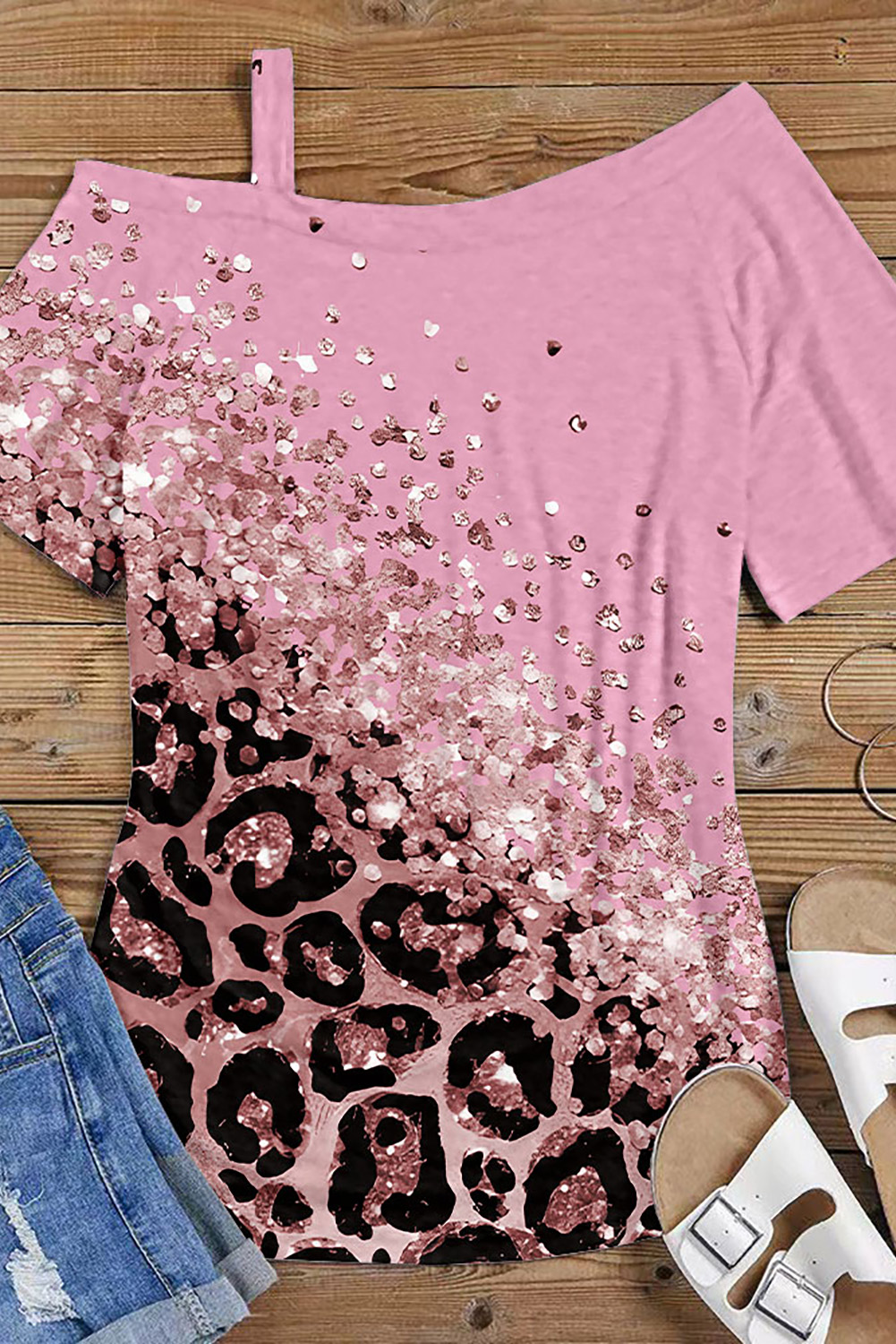 - Get ready for all the compliments in the Ombre Leopard Color Block Metal Chain Asymmetrical Neck Shift Casual Blouses