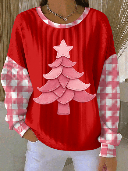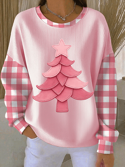 Pink Christmas Tree Art Print Casual Sweatshirt